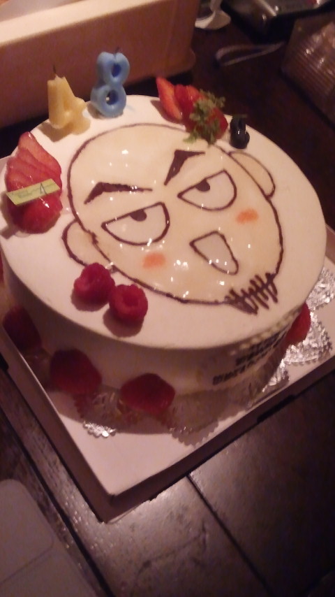 去年も先生の顔が描かれたケーキだったことを